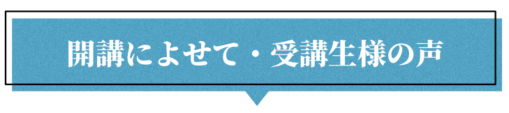 この講座が、みなさんにとって学んでよかったと思える、貴重な体験になりますよう、私も精一杯の気持ちでお伝えしてまいります。